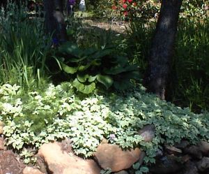 We took a field trip to the rhodedendron gardens in Hiawassee, Georgia and painted there. I picked a little flower bed with hostas and lots of texture. There was a very pretty light-colored varigated ivy tumbling over rocks. The trouble with this was that everybody wanted to stop in front of me and admire it and discuss it. I concentrated on the hosta so much that I missed doing the rest of the painting. I was so sunburned I got hot and disgusted and quit. But this is one that I think I’ll go back and work on.