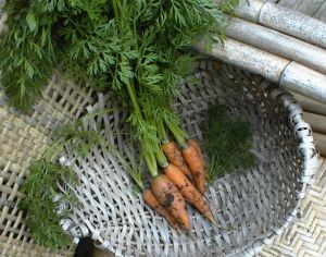 The dirt proves the carrots were freshly pulled out of my garden! There’s also freshly picked dill in that basket for some cottage cheese dill bread tomorrow. This is in the bamboo chair that I’m so crazy about.