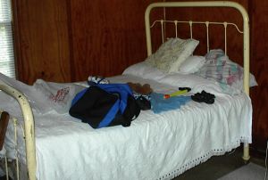 bedroom furniture have been there all my life. If the house were to be jacked up to build an foundation under it, it would surely fall apart from the termite and post beetle damage.