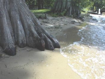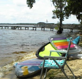 Thank God the alligators don’t seem to have any interest in the lake. That’s probably because it is sandy and clear (at least in front of “our” place), with water the color of iced tea. When the wind blows, it can turn up whitecaps and breakers. When it is still, it looks like glass. You can walk along a pier and see down to the bottom. It is shallow for a long way out, which tends to make it warm. This is good or bad, depending on your point-of-view. Kids love it. And it is a perfect place for sandcastles.