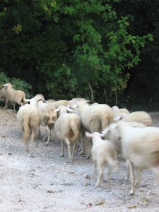 On the other side of this road, leading up to one of the rental houses on the estate, a herd of sheep had been let into one of the harvested vineyards to graze. Later, an intern shepherdess led them into their safe haven for the evening.
