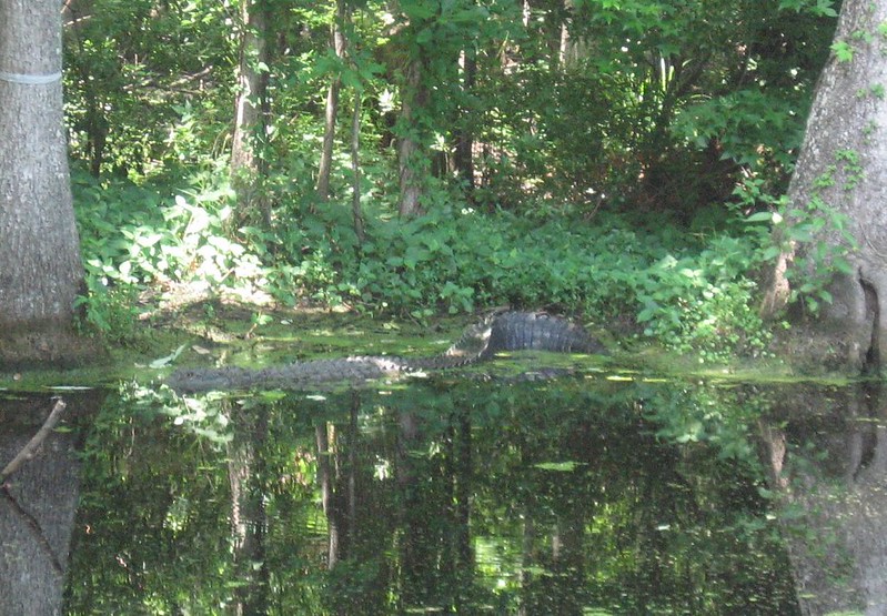 We saw more gators than I have ever seen before. One big one that I call Mama Gator lives right across from our house in the canal. I estimate that she’s about ten feet long. Some trips we see her babies swimming around in the canal. I stress, in the canal, not in the lake. The first day I see an alligator in the lake, the experience will be altered forever for me. We took lots of gator photos, but the reflection off the water messed up most of them. I bet that I saw 2-3 alligators every day.