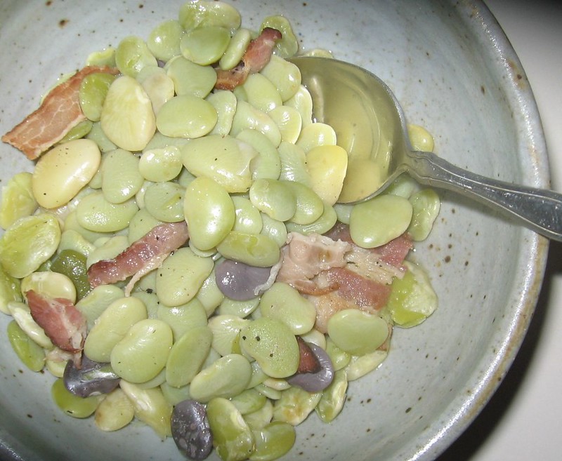 Finally got enough butterbeans at one time to make a little pot of butterbeans and bacon! (You might call them lima beans.)