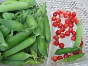 Also the red Nanking cherries finally ripened, and I’ve actually beat the birds to most of them, I think. I took a bag of raw shelled peas and cherries to snack on at work. My co-workers thought that it was pretty strange. I guess it was.