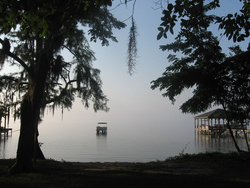 This is my fourth annual post about a weeklong trip to my cousin’s house on the shore of Lake Waccamaw. This week was a little unusual because we were the only ones there the entire time of our stay. My sister, brother-in-law, niece, and grand-nephew, and my cousin and his wife were all supposed to be there the first weekend, and I wasn’t sure about the second weekend until the last minute. Everyone cancelled. This was nice for me in a way, since I revel in solitude, but not so great for Sandy, who is a more sociable fella. We didn’t even get a day visit from my mother or brother. Of course, if anyone showed up yesterday, they found the house shut down, because we skedaddled late Friday night, a day and a half before scheduled.