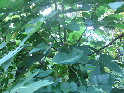 Mmmmm, these figs are so good. The pole butterbeans are using the tree for support.