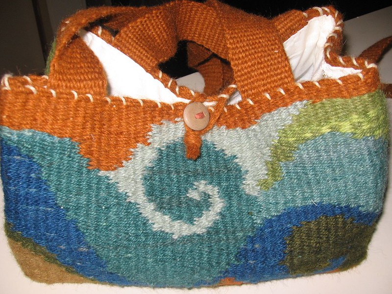 In January 2008, Sandy was rehired. I changed medications and got on with my life, especially my creative life. I planned and explored some paths that didn’t work out, but I did begin weaving the tapestry bag.