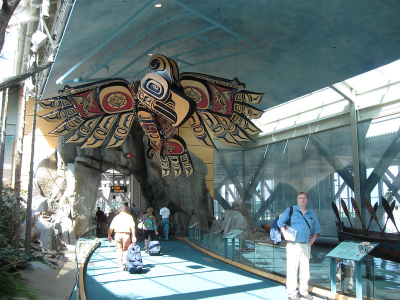 [If you must be stuck in an airport for nine hours, as we were the following Sunday, you could do a lot worse than YVR. Beautiful artwork and architecture, and quite comfortable.]