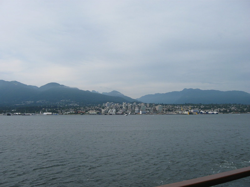 “Arrival in Vancouver 7-12-09 Sun. Waiting for the shuttle to take us to the cruise ship, the Norwegian Sun. It’s about noonish. We have been awake for about 24 hours!!! The taxis at the airport are hybrids!”