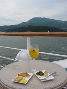 We have a nice spot here in the tapas bar next to a window on the 12th deck. Both of us had Malibu and pineapple juice and I’m having a “mangopolitan” now.