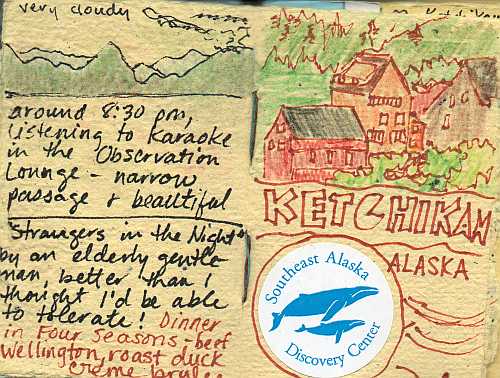 Then shopping at Creek St. over and along Ketchikan Creek – bought coffee and salmonberry jelly and spruce tip jelly and birch syrup at Sam McGee’s for gifts or souvenirs. We also bought a T-shirt for me & a fleece jacket for Sandy.