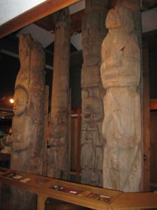 We walked downtown and went through the SE Alaska Discovery Center [one of the visitor’s centers for the Tongass National Forest], then up along Ketchikan Creek where we stopped to pick up some pebbles and to pet a lovable orange cat on our way to the Totem Heritage Center.