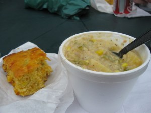 On the way back, we stopped for salmon chowder and cornbread at Alaska Fish House – so delicious, more like stew – smoked salmon and corn in the cornbread. [In hindsight, my favorite meal, and only one of two “local” meals. I would pay money for that cornbread recipe.]