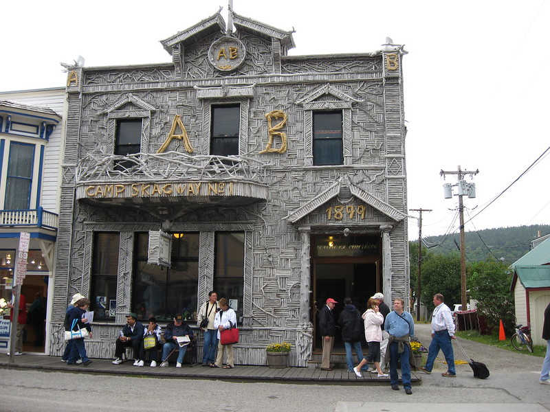 [I loved the Arctic Brotherhood building, which was covered with thousands of pieces of driftwood. We tried to steer clear of the hokey tourist places and concentrate on the local businesses and the Klondike Gold Rush National Park buildings and exhibits.]