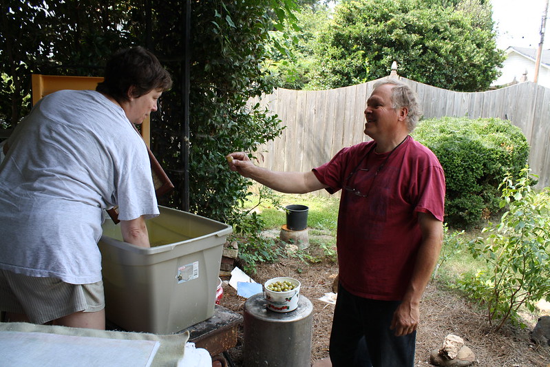 It’s not often that I get photos of me, so here I am in all my glory. Susanne’s daughter Sophie helped me break in the new camera. Susanne’s husband John fed me scuppernong grapes from their vines.