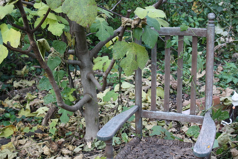 It’s a real mess! Leaves and dying weeds everywhere. I pulled out a few of the many different vines that have taken over at the edges, such as honeysuckle, wild yam, morning glory, and ornamental grape, but my hand couldn’t take it very long. If I can wait until my hand is better, those honeysuckle vines will become random-weave baskets.