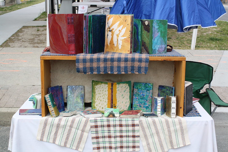 I sold six books! I meant to take more photos of my new books, but the wind kicked up and my attention turned to handling my umbrella and table. The top layer ended up having to lie down flat. The red book on the top left sold and I’m sorry that I didn’t get photos of it because I put a lot of thought into it and it was pretty neat.