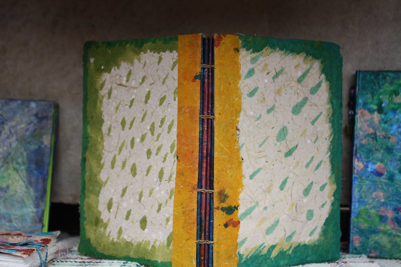 I’m kind of glad this one didn’t sell. I’m right fond of it. It is all handmade paper and the cover was meant to be cut up for spine covers, but then I fell in love with it. It sort of made itself. The button is made from fossilized walrus tusk, and I bought it in Skagway, Alaska from an artist’s studio.