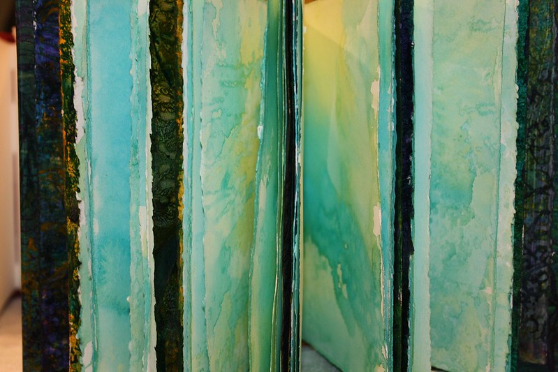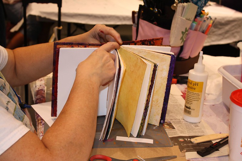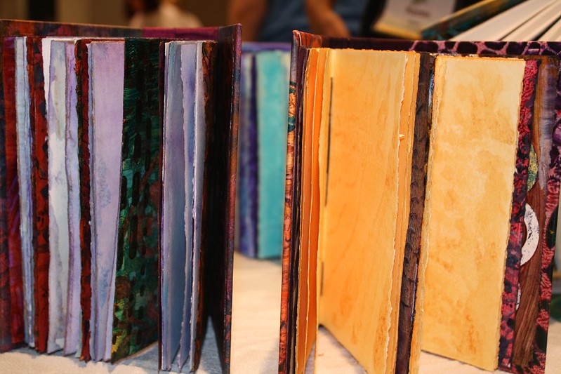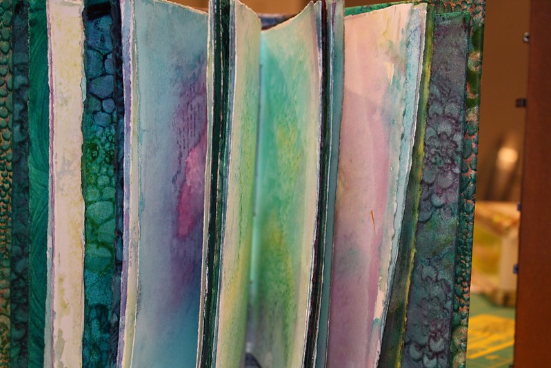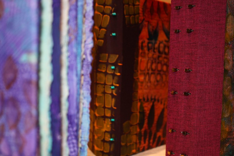 Albie is a bookbinding instructor who is much in demand, as I found to my dismay when all her classes were filled early. I had heard so many people rave about her that I was thrilled when she opened up more seats in her classes, and I managed to nab one in her Episodic Journal class. Her use of fearless rich color is breathtaking.