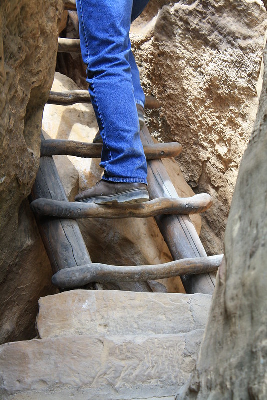 When we were told that people with heart problems shouldn’t go on the Cliff Palace tour and that the exit involved ascending 100 feet including ladders, Sandy and I huddled for a conference and decided to do it anyway. He was fine and my grip held and so we went on a tour of a lifetime through the Cliff Palace.