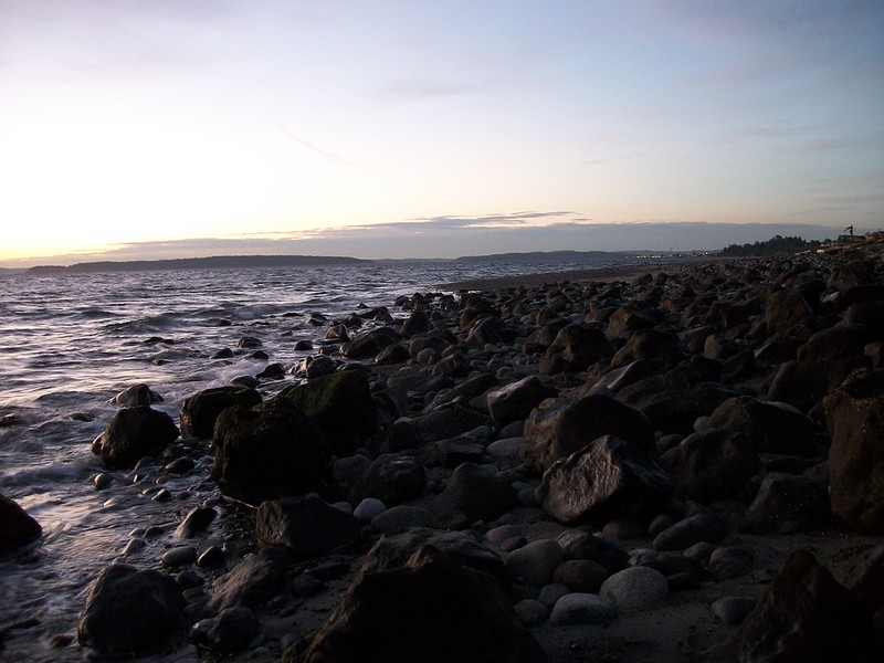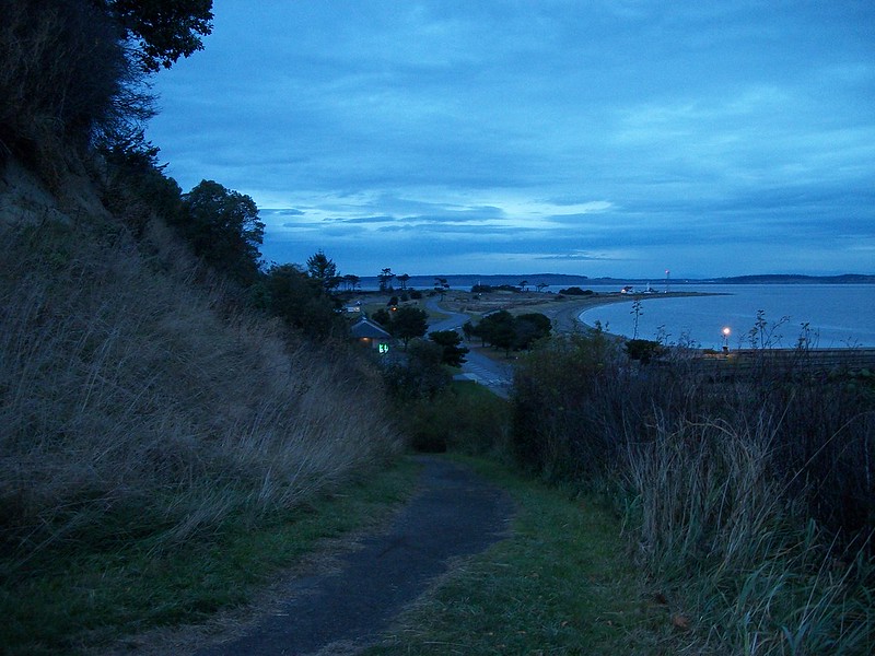 I could hardly hope for better weather that they had when I was there. It was chilly, but mostly sunny and I was able to see the mountains clearly across the water. A local that I met on the beach told me of a good place to find sea glass, so I set out in the dark. I didn’t make it to that beach, but I watched the sunrise sitting on a rock below Point Wilson Lighthouse before I realized that I had been so enrapt in the beauty that I didn’t notice that I was very underdressed and freezing! It is hard to take good photos when your hands are shaking.