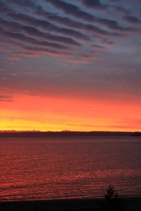The tapestry that I have started based on this beautiful sunrise over the Puget Sound in October 2009 is going to be stunning. I am so psyched over it. I have a lot of beautiful shades of silk that I hand-dyed and some that I bought years ago at a weaving conference.