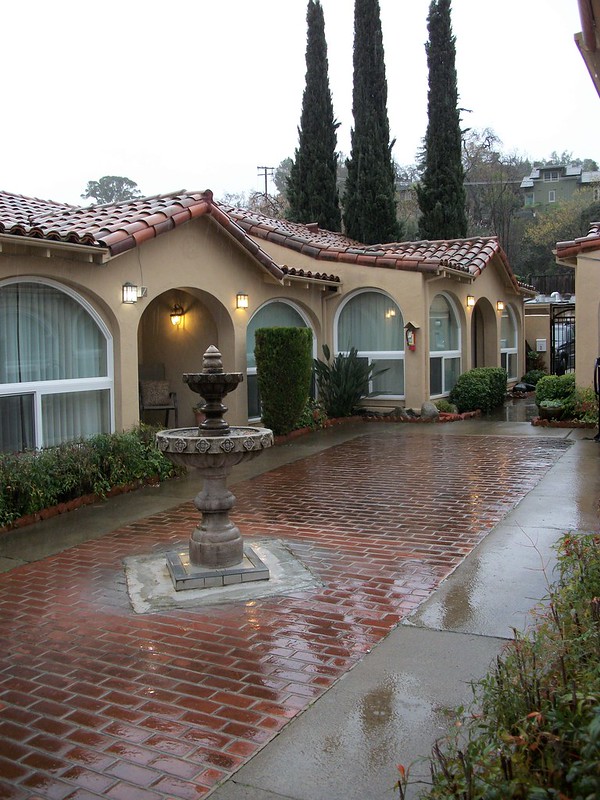The Garden Inn in Los Gatos is very nice and I would definitely recommend it on the basis of my one night here. Reasonably priced and in walking distance of many shops and restaurants. Here’s the courtyard, and an idea of the weather I’m dealing with.