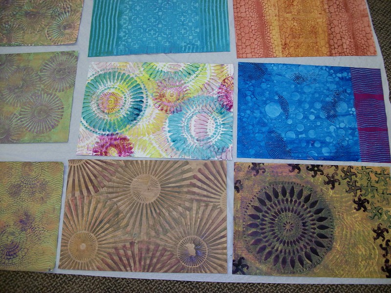 I need to take more photos, but as usual, I became entranced with what I was doing. I kept going until I absolutely could not do it anymore. Today I have to remind myself to SIT DOWN. My hands are not too bad, but my feet and back were letting me know it last night. We are doing a lot of stenciling and stamping and tearing papers, which means it seems more natural to stand slightly bent over a table. My spirit was willing to keep going; my body said NO.