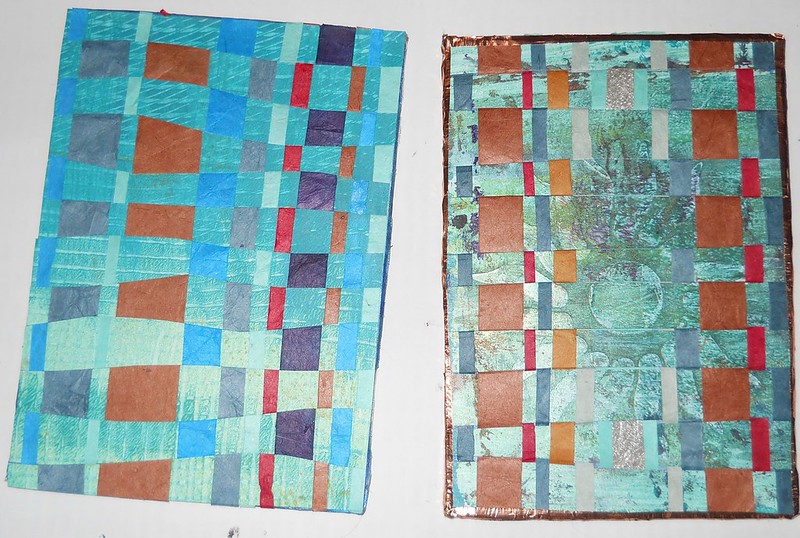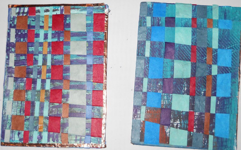 The last two covers are for a book that I was stuck on for a long time. Finally I decided to ditch the idea and cover it up with these weavings. I plan to wrap the edges with foil tape or other strips of paper.