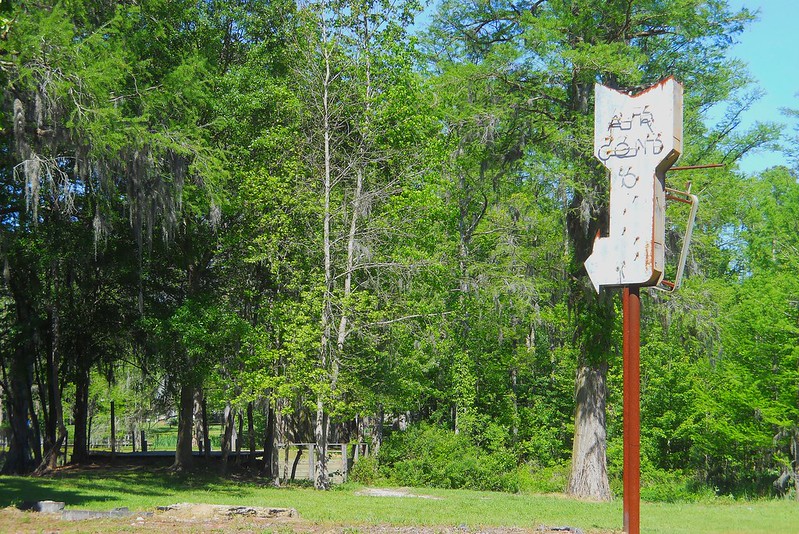 The building that this used to point to was the Starlight. It was the club that my sister’s generation was forbidden to go to in high school so naturally they sneaked off to it. I never made it to the Starlight. By the time I was old enough to want to get in trouble there was the Purple Onion (briefly) and then the Gator Disco Lounge. Now the sign points to a beautiful Spanish moss draped millpond.