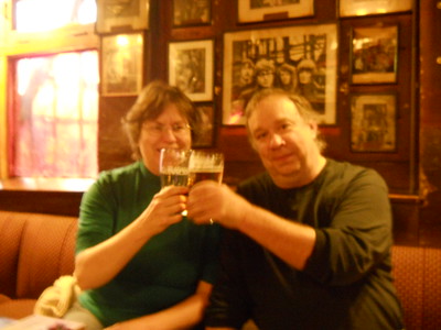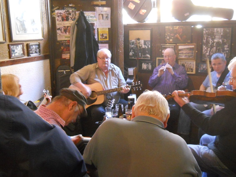 When we arose, the woman at the front desk gave us a map and circled some pubs and restaurants she thought we’d like within walking distance. It was a bit cool but a fine afternoon for a walk. The first pub we stopped at was O’Donoghue’s, where the notes of fiddles and flutes were wafting out the door. We ordered a couple of pints of Guinness, tipped the bartender, and found seats in a small room behind the room with the music and the bar. There was a family from Portugal, a group of locals who seemed to be talking about politics, and a good-looking young couple who seemed to be very in love with each other. We toasted our old friend George O’Rourke, and ourselves.