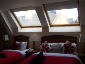 We had to keep moving because the fast highways were behind us. It would be mostly narrow country roads for the rest of our trip. We arrived in Kenmare at Davitt’s around 8 p.m., where we booked a room in their bed and breakfast above the pubs. I was surprised at the beauty and comfort of the room, and the only noise that bothered me was a dog barking next door. The hotel and restaurant was decorated with early 20th century prints and decor, which is my favorite art period. The bedroom had skylights looking over the rooftops. It was clear enough that night that I could see the stars. The food was wonderful. It was not a traditional pub, although they did have a couple of local musicians playing traditional music for a couple of hours. I regretted almost immediately that I had booked only one night here. It was definitely one of the nicest places that we stayed.