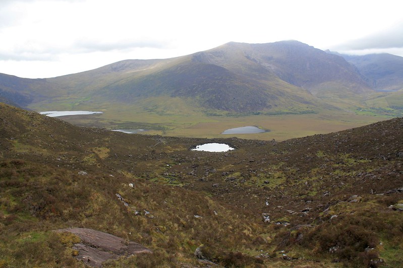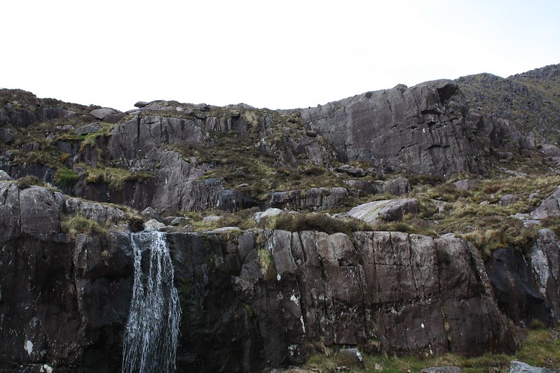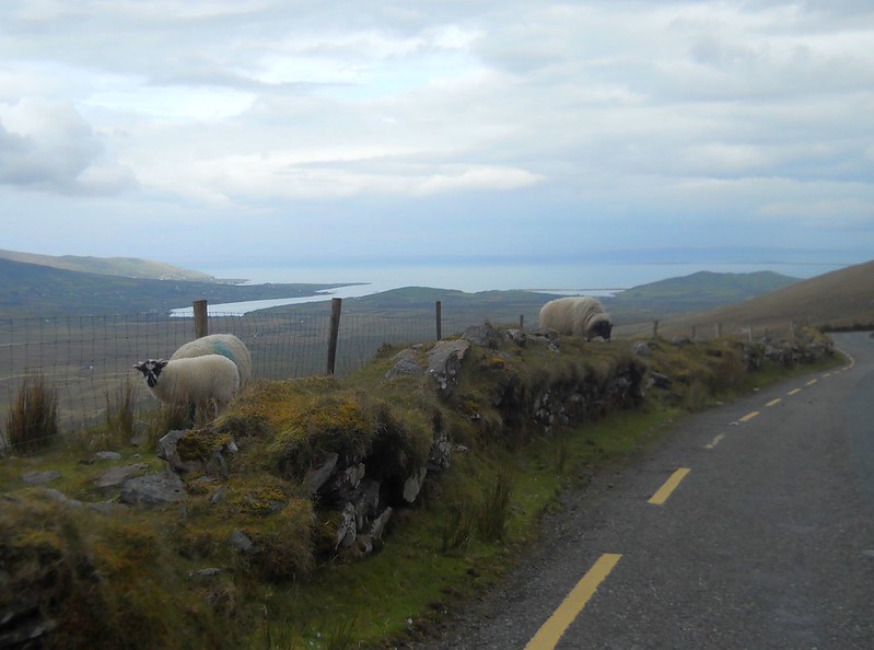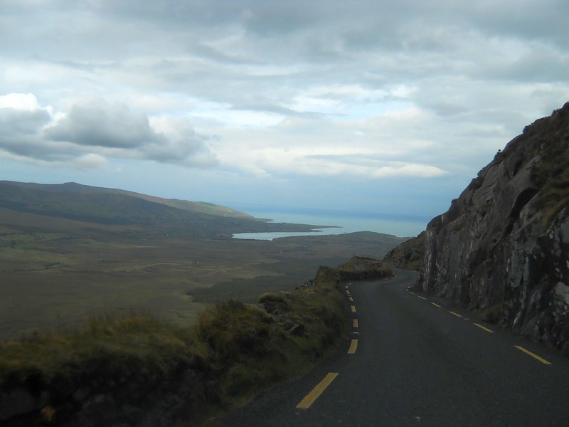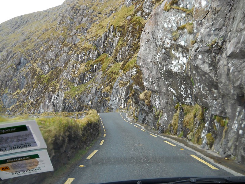 We headed for the Conor Pass, which is the highest mountain pass in Ireland, and we soon had to stop for me to take some Dramamine. Thank God no buses or large trucks were allowed on this road, since its curvy stone wall and cliff lined roads barely provided enough room for two small cars to pass each other. At one point we had to pass another car in a place where neither of us could back up safely. I had to fold in the side view mirror and we slowly moved past each other with about an inch to spare on either side of our car. I bet that body shops do a terrific business in Ireland.