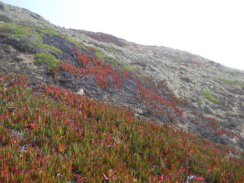 We found a cool little stream with lots of piled up driftwood logs. There were multi-colored succulents and wildflowers everywhere too.