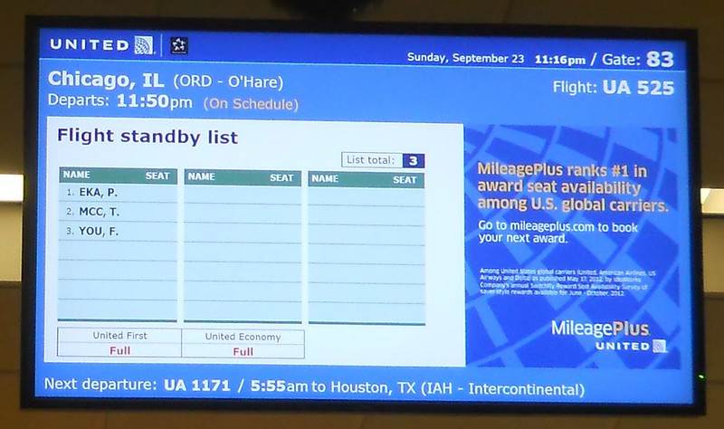 There must have been a family named Young waiting for stand-by on my flight. Either this was unfortunate or somebody at the computer had a wicked sense of humor. Or maybe I just have a twisted mind. Either way, F. You seemed to be out of luck.