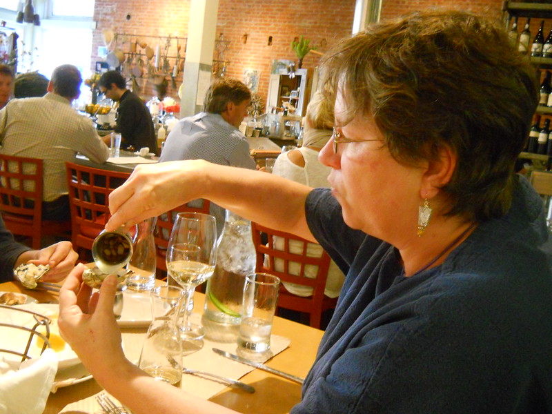 Then we drove back to Petaluma where we met up with Amy, another N. C. girl, and ate dinner at Central Market. I couldn’t leave without drinking some local wine and I already knew how good the oysters are in that area. I had the rainbow trout after the oysters.