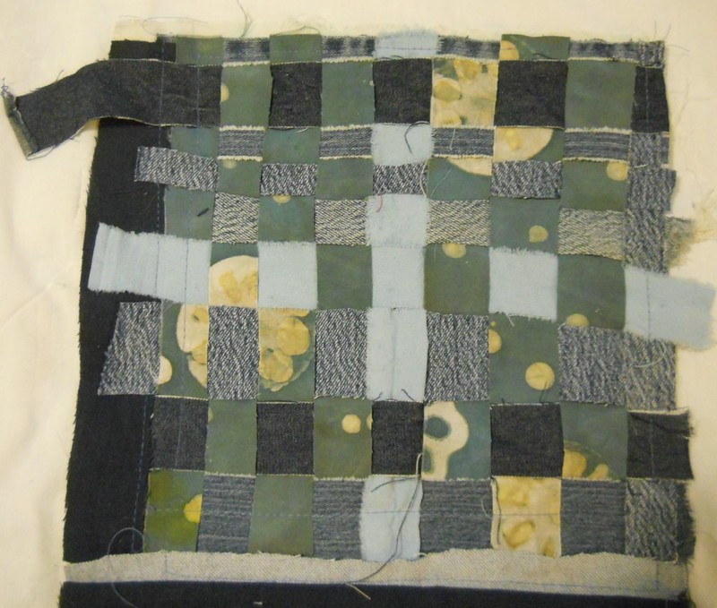 In January, my focus was on healing. I had surgery in two places, my left wrist and my left palm. It took longer than I expected to heal, but I decided that I couldn’t wait any longer to play with some dye and fabric. I also painted this acrylic piece, unusual for me to paint on canvas, but it was an unusual time. I reintroduced myself to a sewing machine, inspired by the work of Jude Hill and her students, because I could not hand-stitch. These boros fascinate me – weaving strips of cloth and stitching them together pushes my buttons on so many levels.