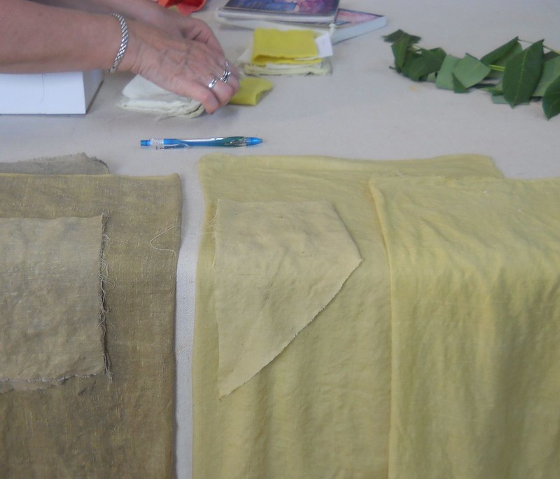 I wish that I had brought a few fabric swatches to try, but I got to see the others’ fabric samples, such as Sharon’s wool felt and Barbara’s silk.