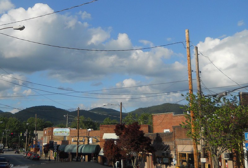 Of course, we spent too much money, even though we spent two nights in the Super 8 motel in Black Mountain. It isn’t bad for the price. Our first stop was at Nice Threads Fiber Gallery on Cherry St. in Black Mountain, where I showed Leslie several of my small tapestries. She is taking them and two scarves on consignment through the end of August. At that point, I hope to figure out somewhere else to foster them, if they don’t sell.