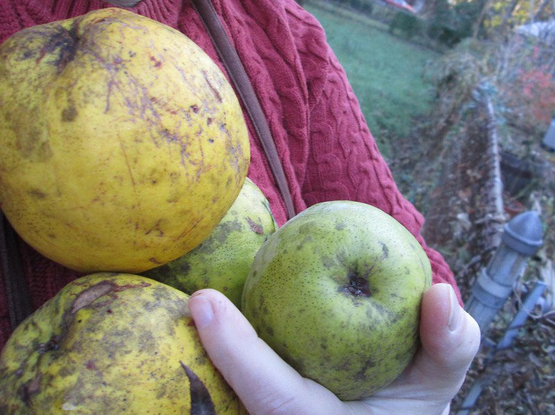 Picked up some quinces from my long absent next-door neighbor’s yard today.