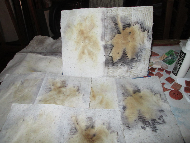 I’ve been steaming leaves in handmade paper signatures for a book I’m making. They make the best prints in combination with metal.
