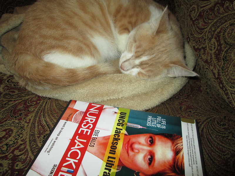 Kicking back with Pablocito and Nurse Jackie tonight after a long day of traveling and house chores.