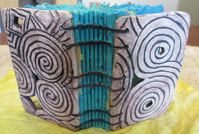 So here’s another book with a clay cover, inspired by the stones and cairns at Newgrange near Dublin, Ireland.