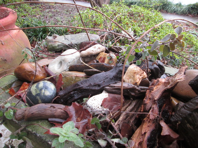 A wet morning, with the temperature dropping all day to settle around 4 to 8 degrees tonight. We ain’t used to this down here. I picked up that beautiful blue and green stone on a Puget Sound beach.