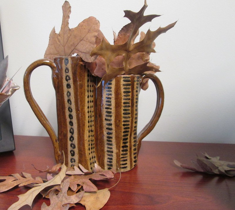 I expect that by the end of the year I may have taken a photo of every crook and cranny in my office – here is my collection of oak leaves in a ceramic piece I made about 10 years ago.