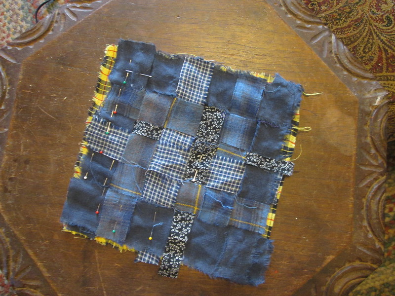 This weaving has some preciousness – strips from my father’s flannel shirt, my husband’s linen shirt, my favorite pajama pants that I finally wore out. My mother gave me a lot of her old quilting scraps. They are a little too country gingham for my taste, but good for a little brightness peeking out from the background.