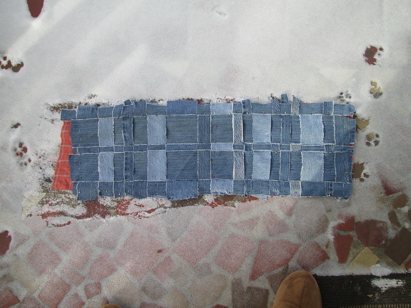 So I fired up the wood stove and played with weaving some denim strips. I like the simplicity of this. I’m going to weave another one to play with more complex weaves.