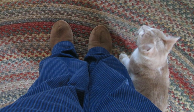 Pablocito has been following me and showing a lot of dominance behavior toward me this morning. I bent over to pick up some papers he knocked off the counter and he got on the back of my head and “bit” me and held it the same way he does to Theo. Didn’t hurt a bit but I understand how Theo feels now. It was much funnier to me that it was to Theo, though.