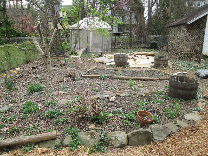 there last year. I used to plant lettuce and spinach under the maple tree and let the lettuce reseed itself. That area has been reclaimed by ground ivy, English ivy, and soapwort. I don’t think that I will plant on that side of the Back Forty anymore.