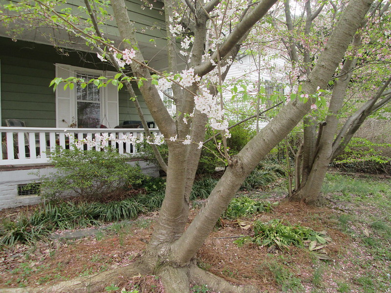 The front shade garden is getting better. This is the second year. I transplanted more large Lenten roses in the middle between the Yoshina cherry trees and that’s why they look so sad. Eventually I’ll have this area covered with hostas and foxgloves and ferns and whatever else I can snag for free. I still have many in the back but I have to stop digging for a while because of tendinitis.